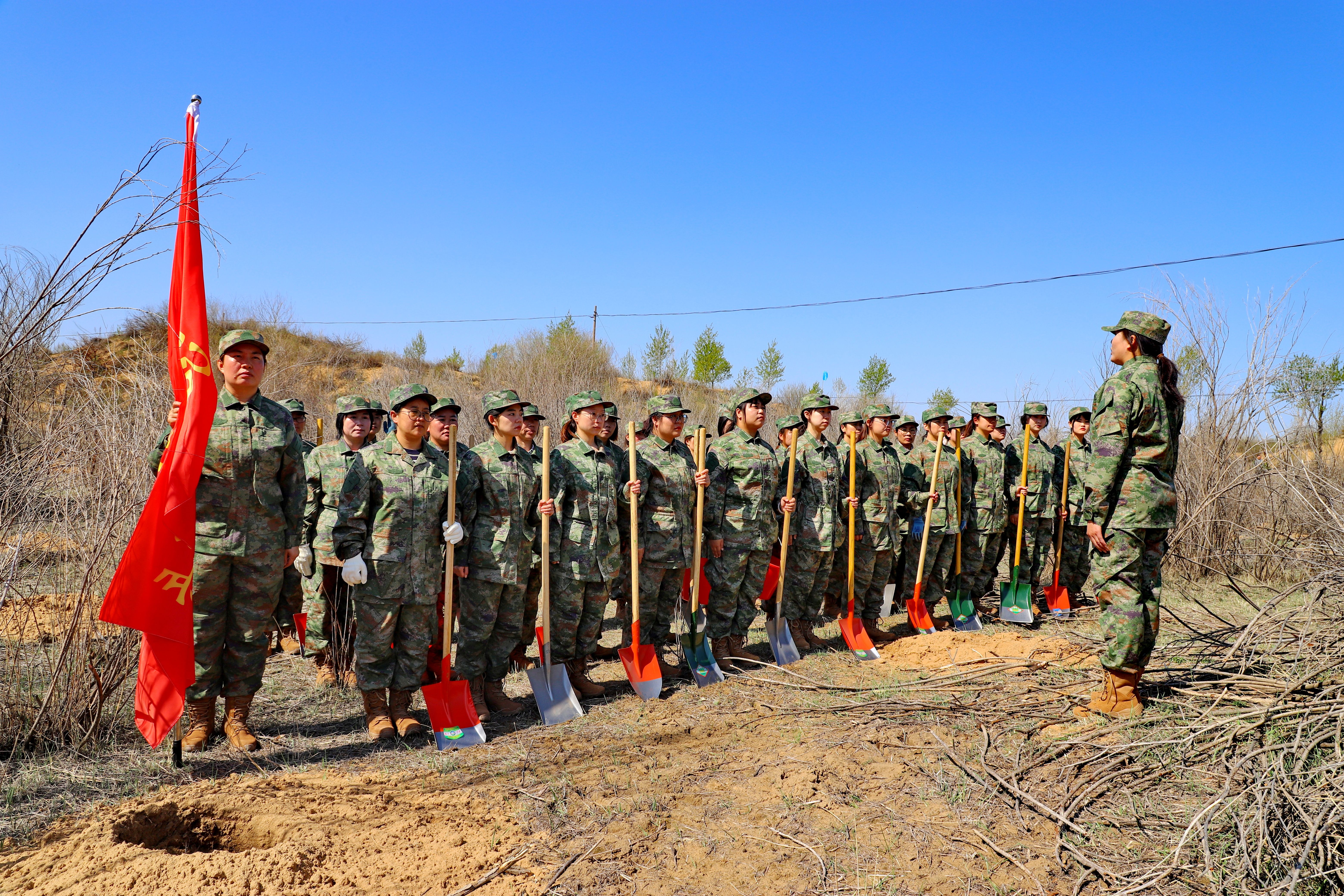 据了解,位于榆阳区的补浪河女子民兵治沙连于1974年建立,先后共有485名女民兵扎根大漠深处,赓续奋斗50载,面对恶劣环境毫不畏惧,把青春和汗水洒在人迹罕至的毛乌素沙地,推平沙丘800多座,营造防风固沙林带33条,开辟出1.4万多亩的“沙漠绿洲”,有力诠释了“绿水青山就是金山银山”的生态文明理念,是艰苦奋斗、无私奉献、锲而不舍、久久为功的“三北精神”忠实践行者。补浪河女子民兵治沙连先后荣获“新长征突击队”“绿化祖国突击队”“全国三八红旗集体”“全国防沙治沙十大标兵单位”“全国民兵工作先进单位”“治沙英雄女民兵连”等荣誉称号。