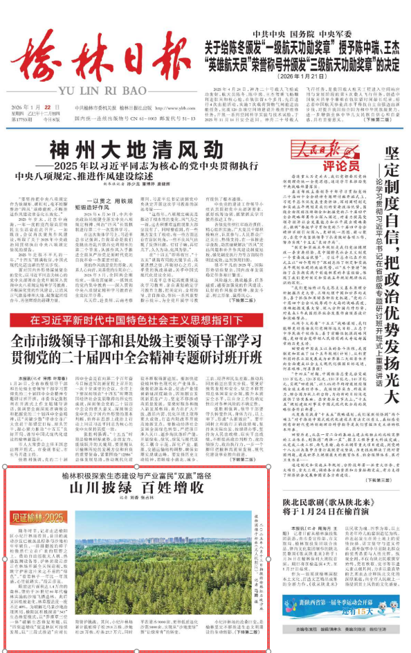 “‘十五五’时期,我们将坚持以《中共榆林市委关于制定国民经济和社会发展第十五个五年规划的建议》为指引,坚定不移走生态惠民、生态利民、生态为民之路,全力打赢黄河‘几字弯’攻坚战,为榆林加快建设黄土高原生态文明示范区、打造名副其实的‘塞上绿洲’贡献更大‘林草力量’。”市林草局副局长王立荣说。